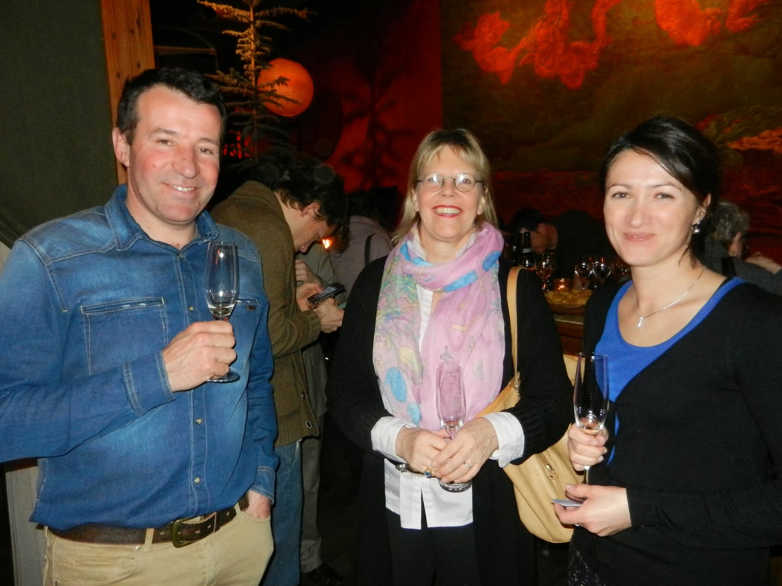 December 2, 2021 Christian Schiller, DC Wine Journalist, Blogs about Buck’s Winemaker Dinner. Lot’s of Great Pics! SCHILLER-WINE A DAILY, INTERNATIONAL WINE BLOG FRIDAY, MARCH 7, 2014 13 French Winemakers Presenting their Wines at a Dinner at Buck’s Fishing and Camping in Washington DC, USA Picture: Christian G.E. Schiller with Husband and Wife Team M. Jean Francois Meynard and Christelle Gauthier from Chateau La Bouree, Cotes de Castillon, BordeauxThis was a very exciting winemaker dinner: With 13 visiting winemakers from all around France. It took place a Buck’s Fishing and Camping in the Chevy Chase area in Washington DC. The winemakers were in town for the annual portfolio tasting of Wine Traditions, an importer of French wines. Ed and Barbara Addiss’ Wine TraditionsWine Traditions: Created in 1996 by Edward Addiss and Barbara Selig, the philosophy of Wine Traditions is to discover independent winemakers whose passion for their vineyard and mastery of their winemaking craft combine to create a product that is a beautiful expression of the land from which it comes. They believe their portfolio demonstrates that wonderful wines can be found beyond well-known appellations and need not be overpriced. For them, wine is meant to be enjoyed with dinner, every day and at prices that make it an appropriate component of the meal. Pictures: Christian G.E. Schiller and Barbara Assiss, and Ed Assiss, Owners of Wine Traditions Buck’s Fishing and CampingTom Sietsema, Washington Post: This arty and eclectic restaurant serves classic food made with the best ingredients. There are few local kitchens that do its familiar dishes better than Buck’s. The 4 expertly prepared courses of American cuisine from Chef James Rexroad were indeed excellent. Picture: Buck's Fishing and Camping on 5031 Connecticut Avenue, Washington DCOwner James Alefantis, who told us that he also owns a restaurant in Berlin, Germany, is charming and welcoming as is his restaurant: We are a small, neighborhood independently owned Fish Camp of a restaurant, where a woody, fire lit atmosphere is a great place to enjoy the best local produce, meats and fish. Pictures: Annette Schiller, Ombiasy PR and WineTours, Christian G.E. Schiller and Owner James AlefantisSee: 3 Wine Tours by ombiasy Coming up in 2014: Germany-North, Germany-South and Bordeaux Winemaker Dinner with 13 Producers from FranceAt this totally unique event, after a Champagne and oyster welcome, the 13 French winemakers were on hand to present their wines. We had the opportunity to select one of three wines with each of the 4-courses to pair side-by-side with Buck's beautiful menu. Pictures: The DinnerWelcomeOysters on the 1/2 Shell, Warm Gougeres, and Selection of Saucisson Bourdaire-Gallois, Brut Champagne NV First CourseHouse Applewood Smoked Salmon with its Roe 3 Wines and 3 Winemakers Pictures: Brigitte Ardurats, Felix Debavelaere and Katia Mauroy-Gauliez, and their WinesChateau Magneau, Graves Blanc 2012Brigitte and Jean-Louis Ardurats: Winemakers/ Owners of Chateau Magneau, a beautiful Graves producer in the south of Bordeaux. The Graves region is often referred to as 'the cradle of Bordeaux wine' and has been described as a beauty asleep in her woods and forests. We were delighted to taste their Graves Rouge. Picture: Christian G.E. Schiller and Brigitte and Jean-Louis Ardurats, Winemakers/ Owners of Chateau MagneauDomaine de Bel Air Pouilly-Fume 2012 Owner/ Winemaker Katia Mauroy-Gauliez from Domaine de Bel Air hails from the Loire Valley where the Sauvignon Blanc grape thrives. Katia Mauroy-Gauliez and her brother Cedric Mauroy are the ninth generation to manage Domaine de Bel Air. Their 15 acres of vineyards straddle the towns of Pouilly-sur-Loire and Saint Andelain. Pouilly-Fume is one of the Loire Valley’s most famous wines – a quintessential expression of flinty, vivacious Sauvignon Blanc. Domaine Rois Mages "Les Cailloux" Rully Rouge 2011Anne-Sophie Debavelaere, a native Burgundian, began her Domaine in 1984. 5 years ago, her son, Felix Debavelaere, who was sitting next to me at the dinner, took over. He now farms 11 hectares of vines which are mostly in Rully, but include small parcels in Bouzeron and Beaune. The vineyards are all worked with respect for the land in a fashion known as "lutte raisonnée". The winery or "cave de vinification" is a vaulted cellar which was dug from the Rully hillside in 1850. It was originally built by a local negociant who wanted to have a cellar for sparkling wine similar to those in Champagne. Picture: Christian G.E. Schiller and Felix DebavelaereSecond CourseWild Local Mushrooms with Tagliatelle Pasta and Herbs 3 Wines and 3 Winemakers Pictures: Samuelle Delol, Elisabeth Billard, Michel Champseix with Ed AddissDomaine Billard Hautes Cotes de Beaune Blanc 2012Winemaker Elisabeth and Jerome Billard, Domaine Billard have 12.5 hectares of vineyards in different appellations throughout the Cotes de Beaune. Their largest holdings are in the Hautes Cotes de Beaune with other small plots located in Saint Romain, Saint Aubin 1er Cru, Auxey Duresses and Beaune. Chateau Vieux Chevrol Lalande de Pomerol 2009 The Champseix family has made wine at Château Vieux Chevrol for many generations and continues to do so in a traditional manner. Jean-Pierre Champseix runs the estate today (20 hectares), aided by his son Michel. He has a profound respect and veneration for his land, a relationship that truly guides his work. The vineyard lies on the Neac plateau overlooking the vineyards of Pomerol. The soil is clay mixed with gravel and iron-rich sandstone known locally as "crasse de fer". The vineyard is planted to 80% Merlot, 10% Cabernet Franc and 10% Cabernet Sauvignon. Picture: Jean-Pierre Champseix, Château Vieux Chevrol, Lalonde de Pomerol, and Christian G. E. SchillerChateau Gueyrosse Saint Emilion 2003Winemaker Samuelle Delol, owns two estates Chateau Bel Air and Chateau Gueyrosse in St. Emilion. Chateau Gueyrosse d